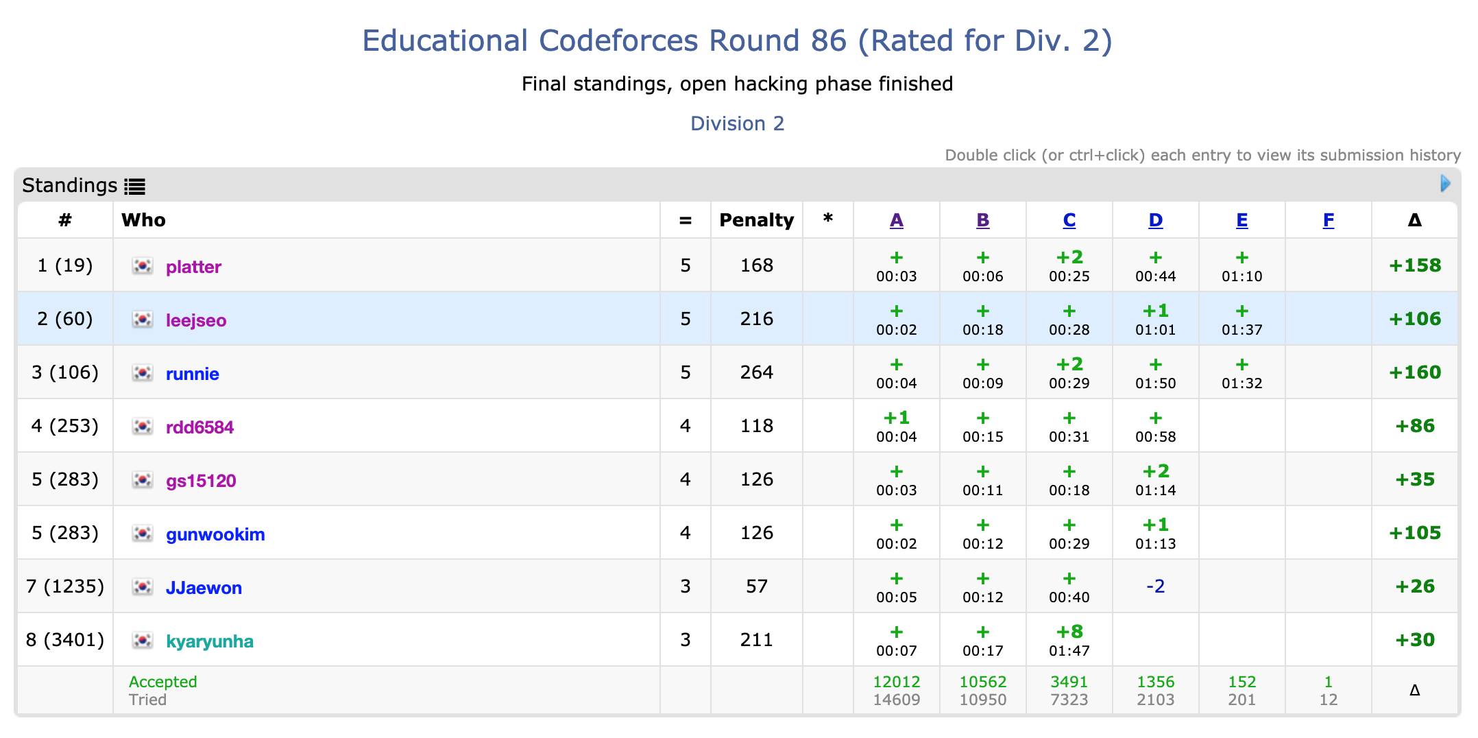 이번 대회에 대한 문제 A ~ F 중 내가 대회중에 해결한 5문제에 대한 풀이를 기록해둔다. (대회 문제 링크)