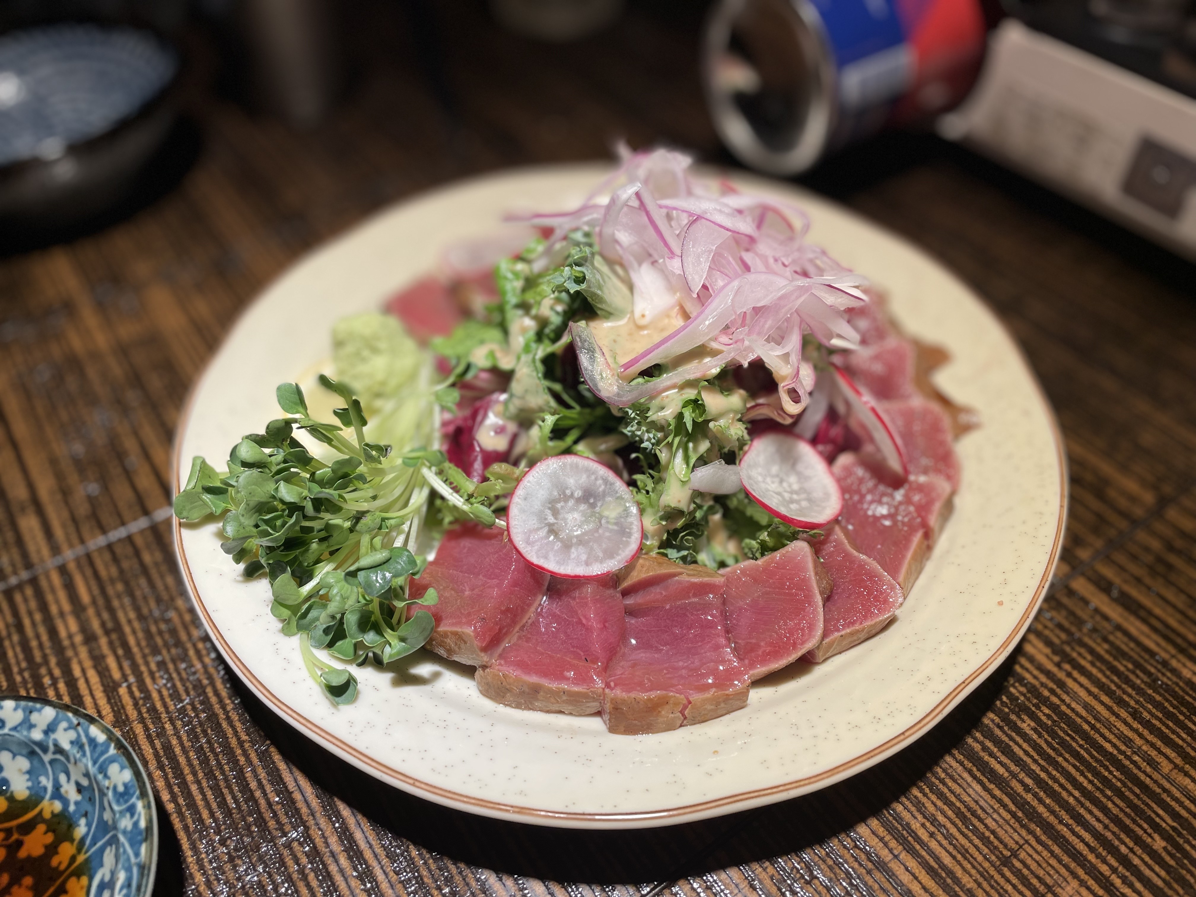 친구 두 명과 함께 식사 겸 술을 마셨다. 원래는 "솔브드"라는 서비스의 개발자로 유명한 친구 한 명도 오려 했었으나, 기상 상황 때문에 오지 못해서 조금은 아쉬웠다. 참치 타다키와 하이볼 모두 맛있었다.