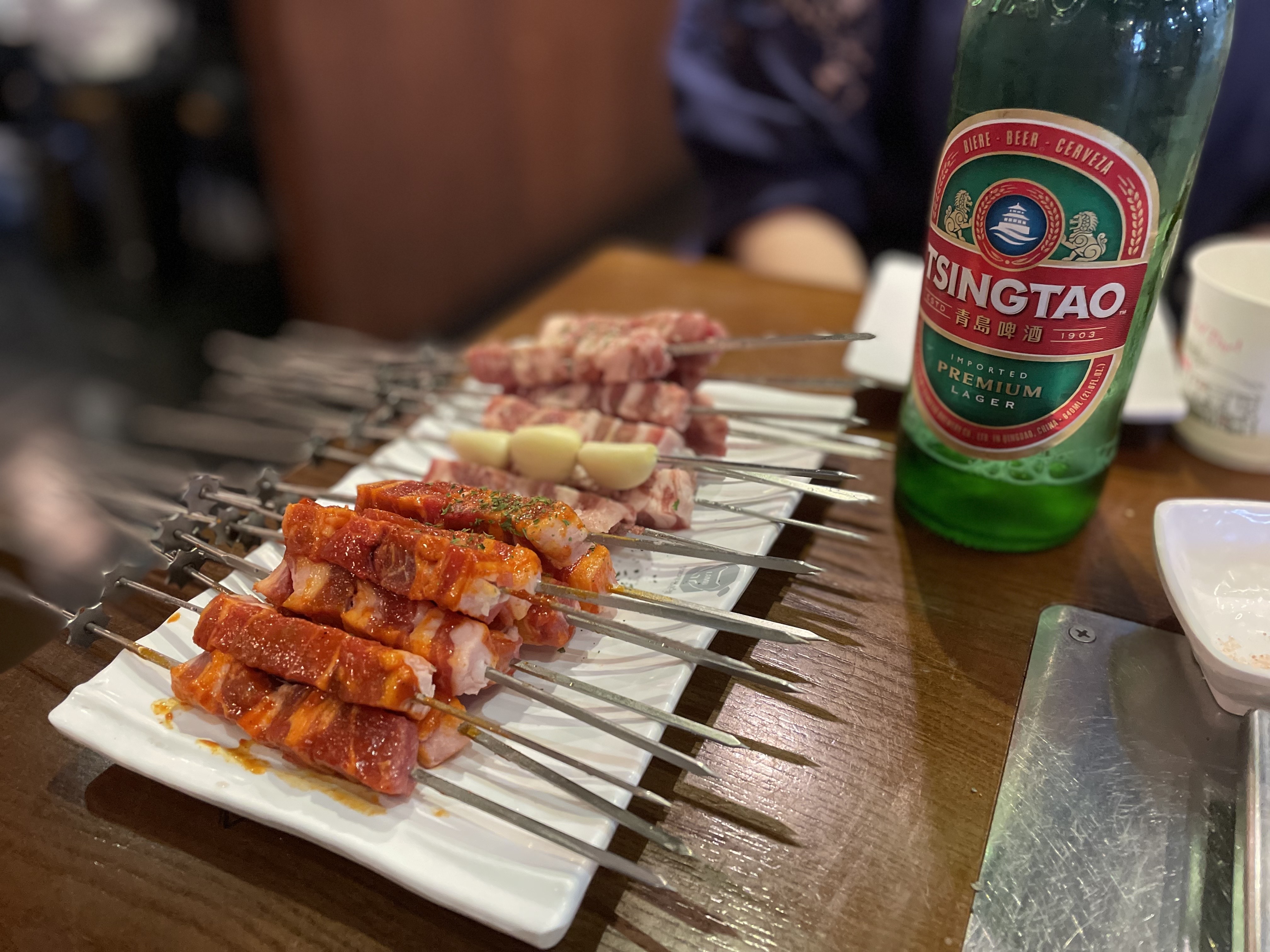 친구 세 명과 함께 양꼬치를 먹었다:)