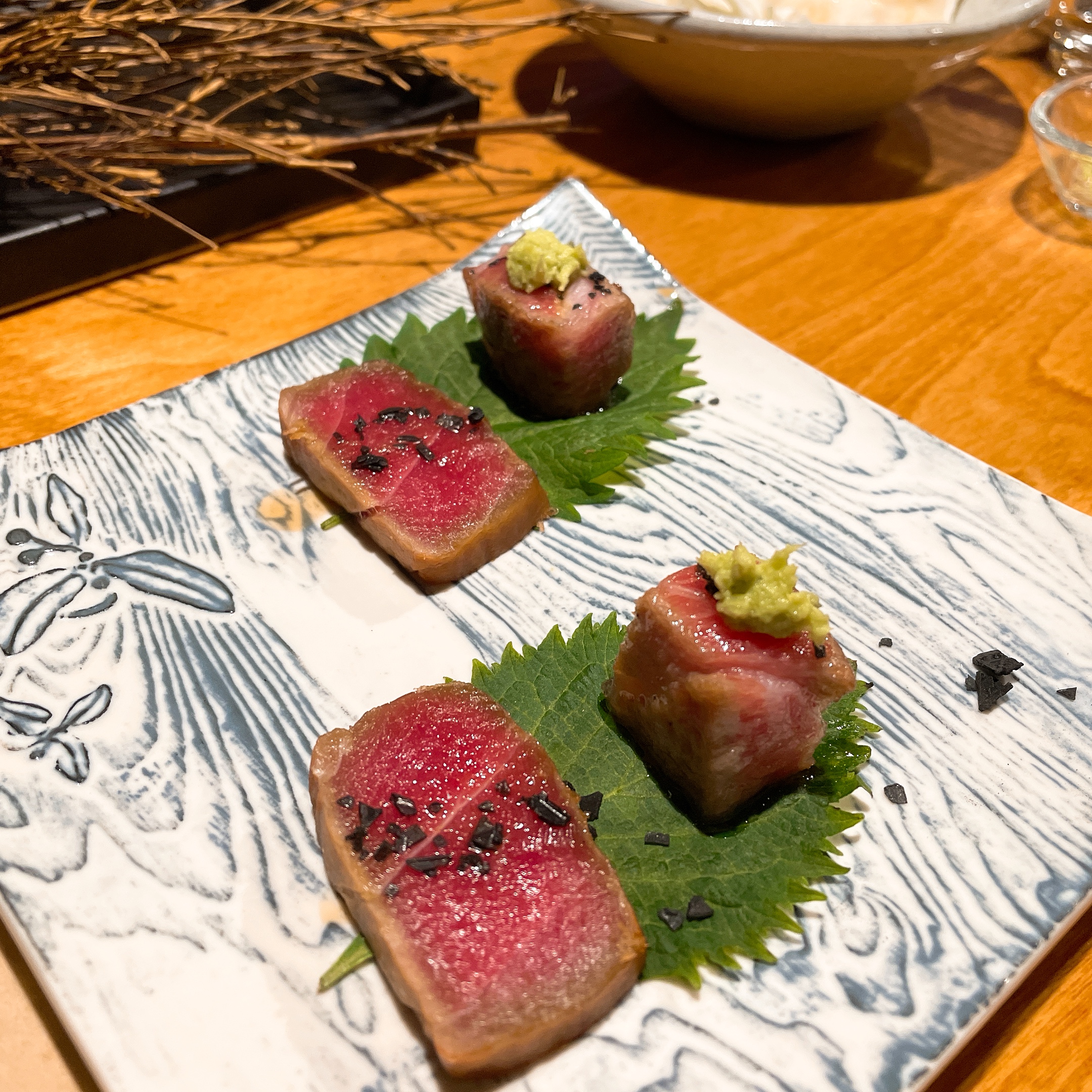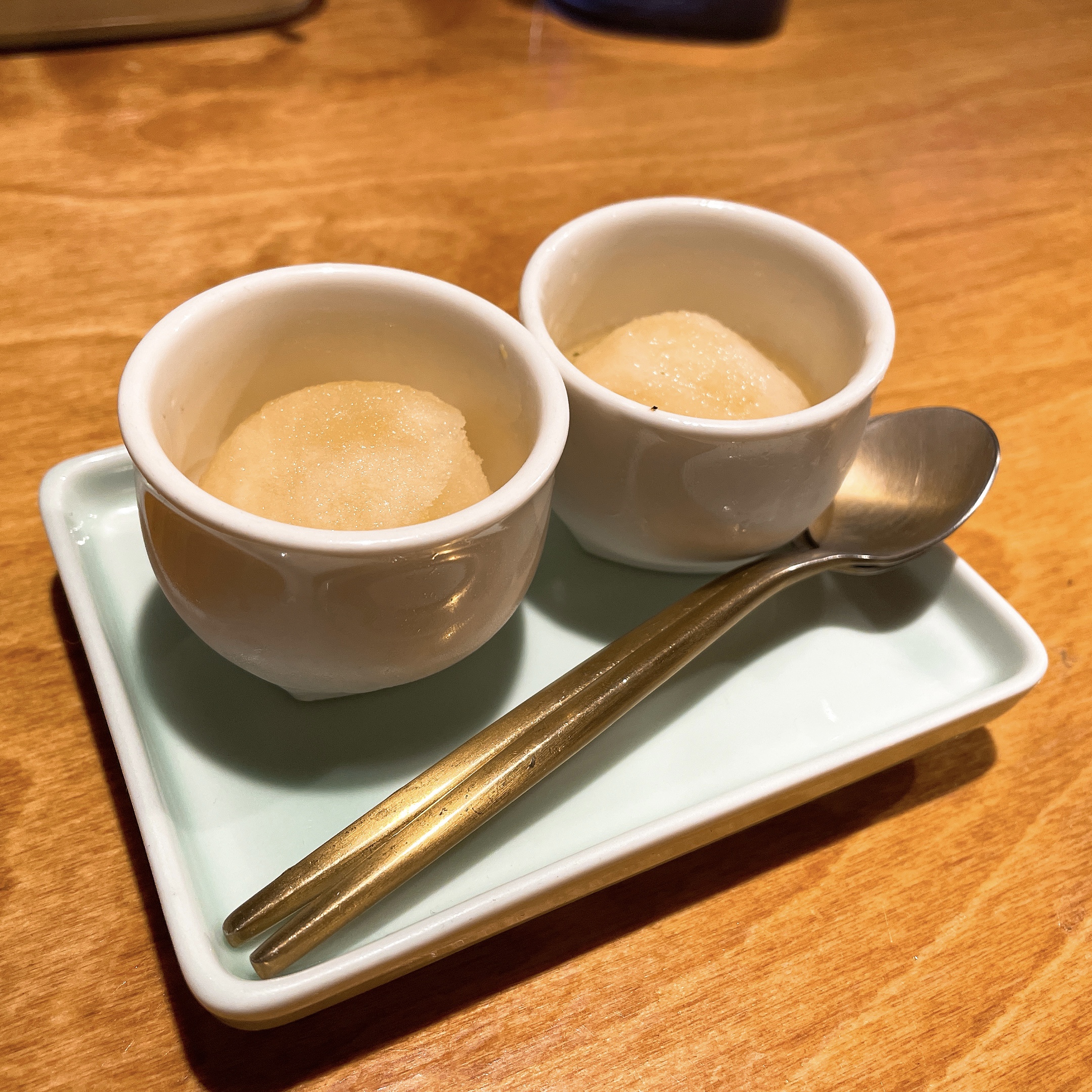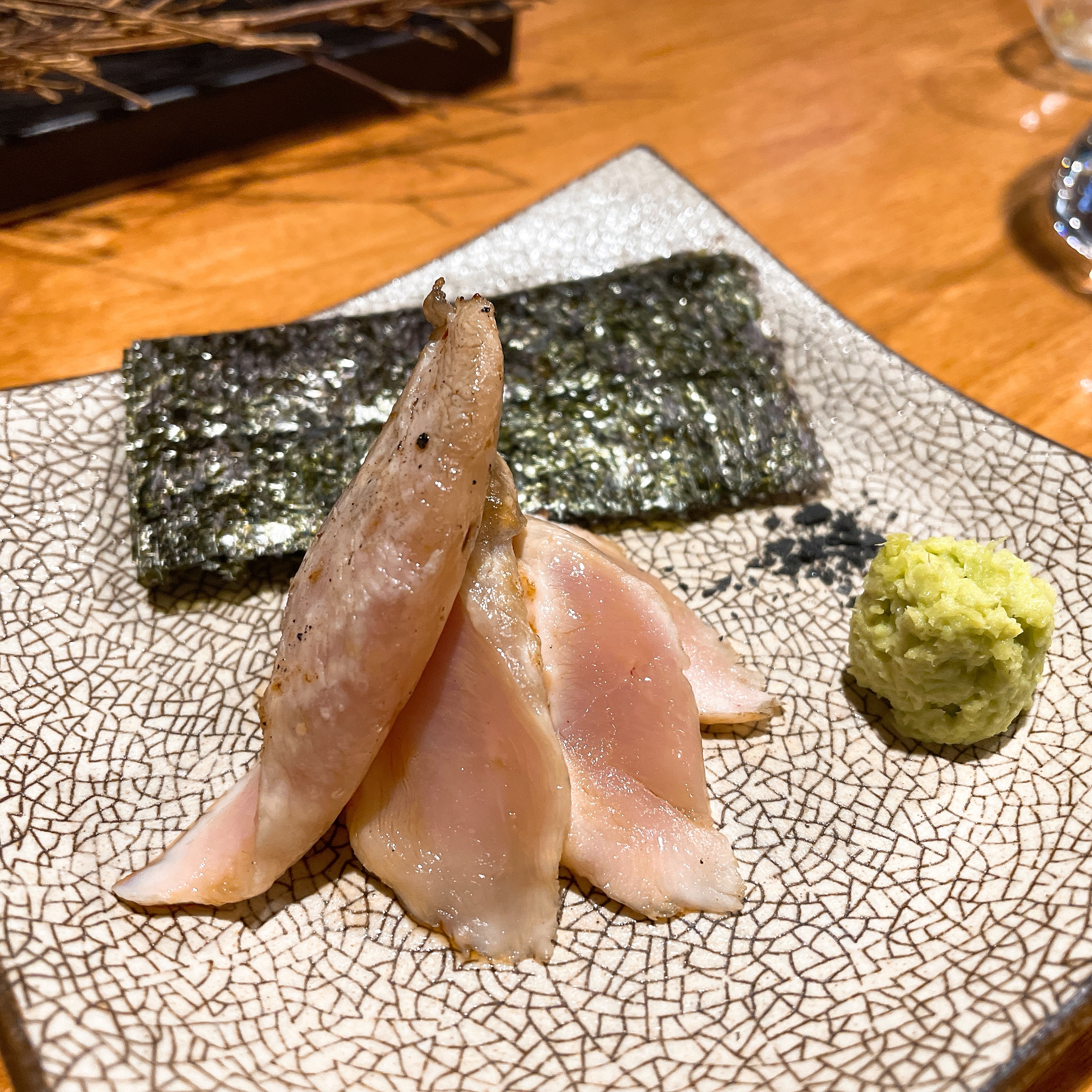 유자 사케는 처음 보는데 있길래 신기해서 시켜봤다. 짭조름 한 맛이 술의 향미를 더욱 북돋아줬다. 이후에 신사점 갔을 때는 스트레이트로도 마셔 봤는데, 온더락으로 마시는게 더 좋은 술이라는 생각이 들었다.