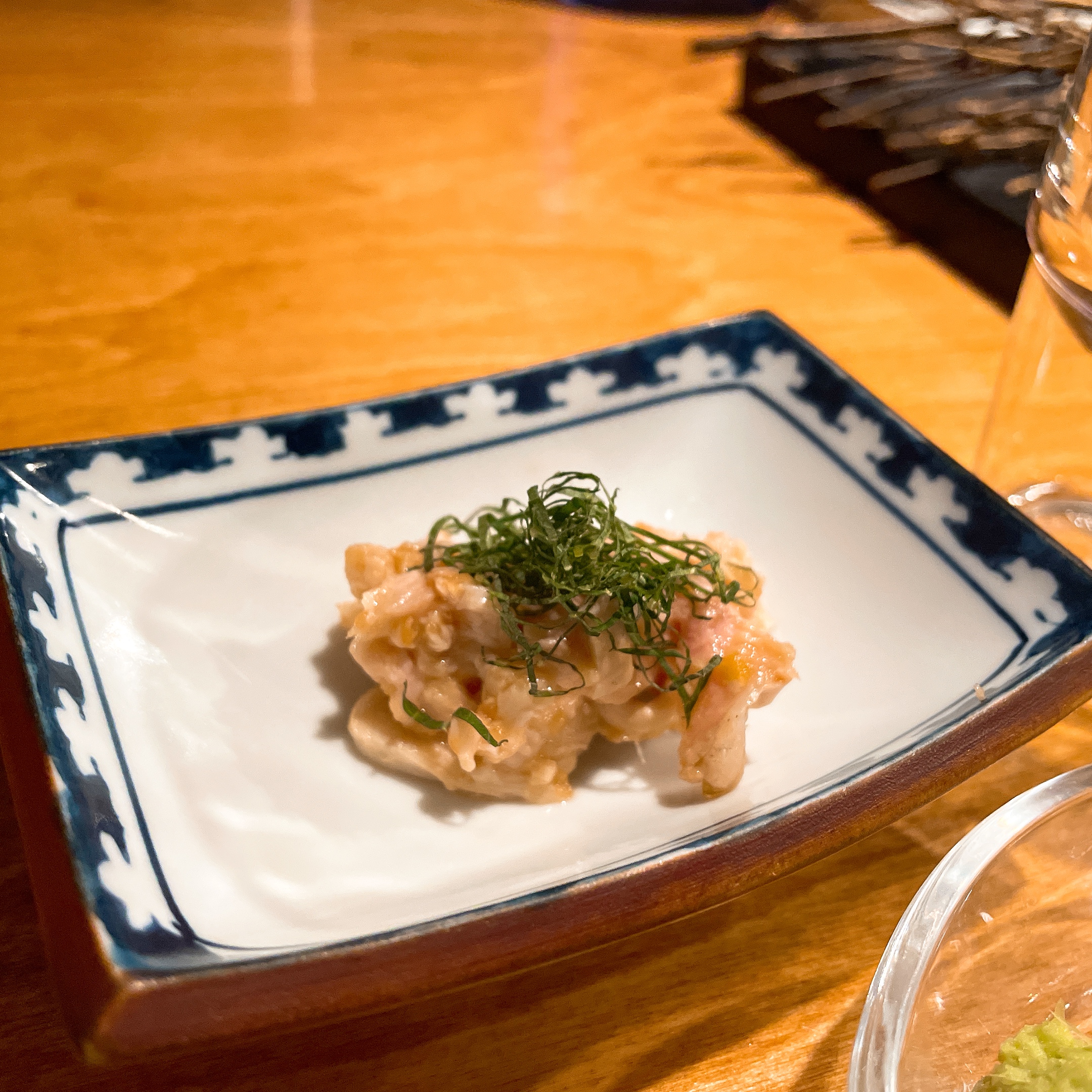 유자 사케는 처음 보는데 있길래 신기해서 시켜봤다. 짭조름 한 맛이 술의 향미를 더욱 북돋아줬다. 이후에 신사점 갔을 때는 스트레이트로도 마셔 봤는데, 온더락으로 마시는게 더 좋은 술이라는 생각이 들었다.