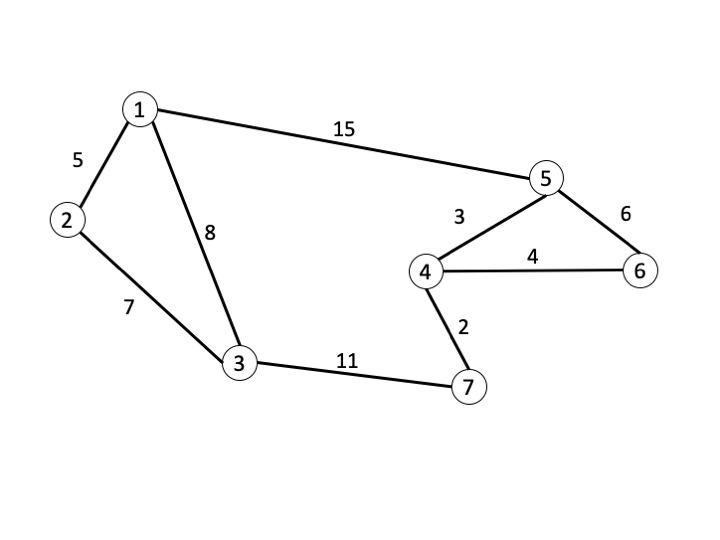 예를 들어, 7개의 정점으로 이루어진 그래프 $G$가 있다고 하자.