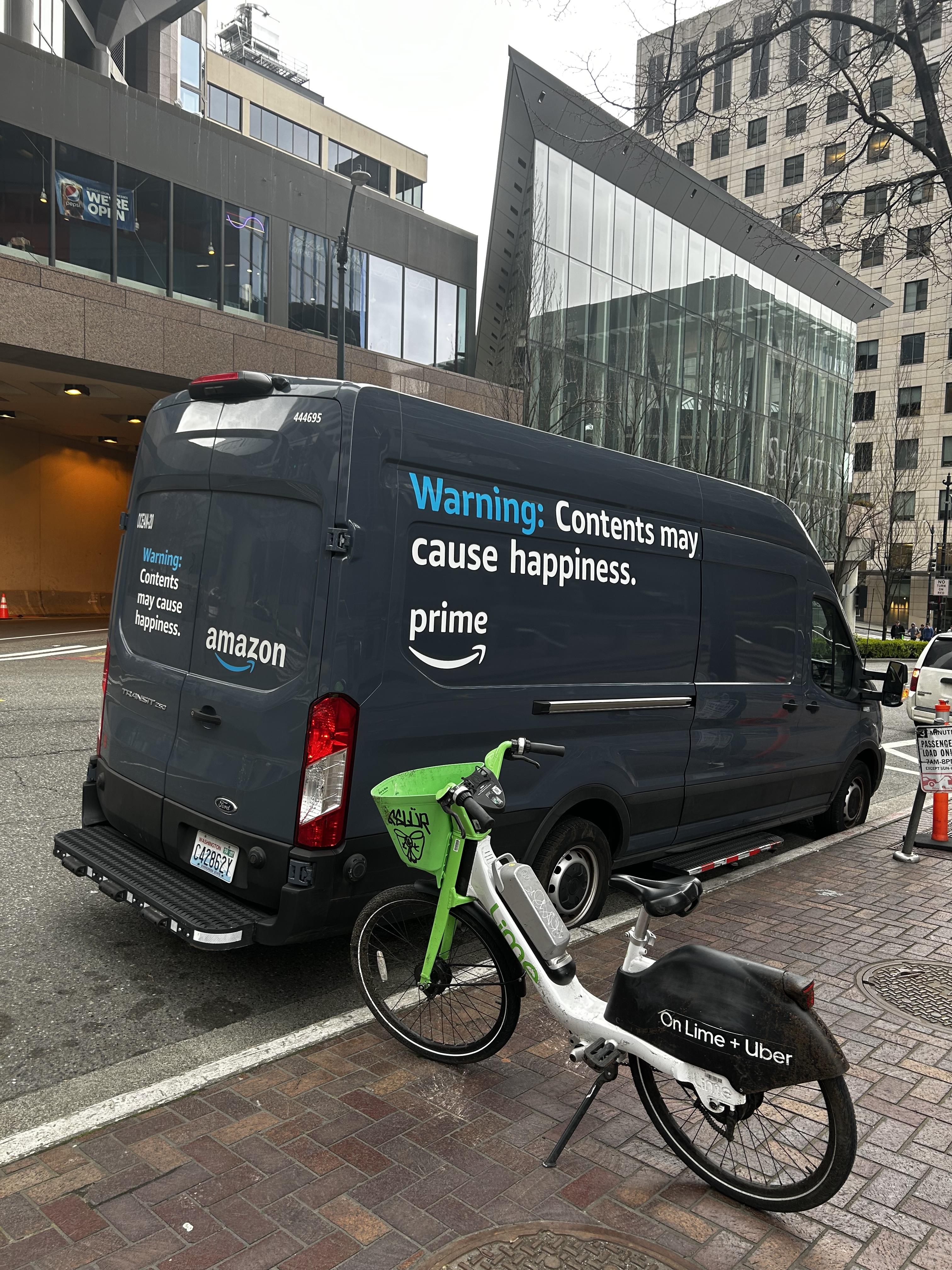 아마존 배송 트럭에 적힌 문구가 재밌었다.
