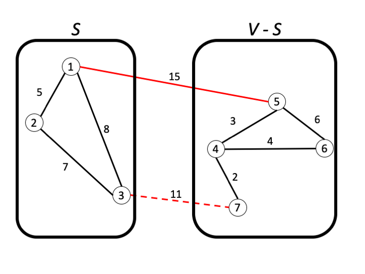 이 알고리즘의 정당성을 설명하기 위해서는 MST의 성질을 알아야 하며, 이 글의 주된 주제이기도 하다.